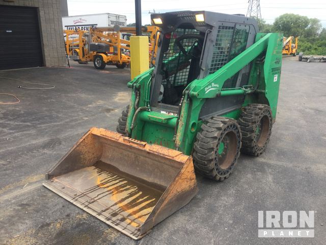 Enclosed Cab, Heater, Auxiliary Hydraulic Plumbing, Vertical Lift, Self Leveling, Solid Tires, Manual Coupler, 72" Wide General Purpose Smooth Edge Bucket, 46" Forks